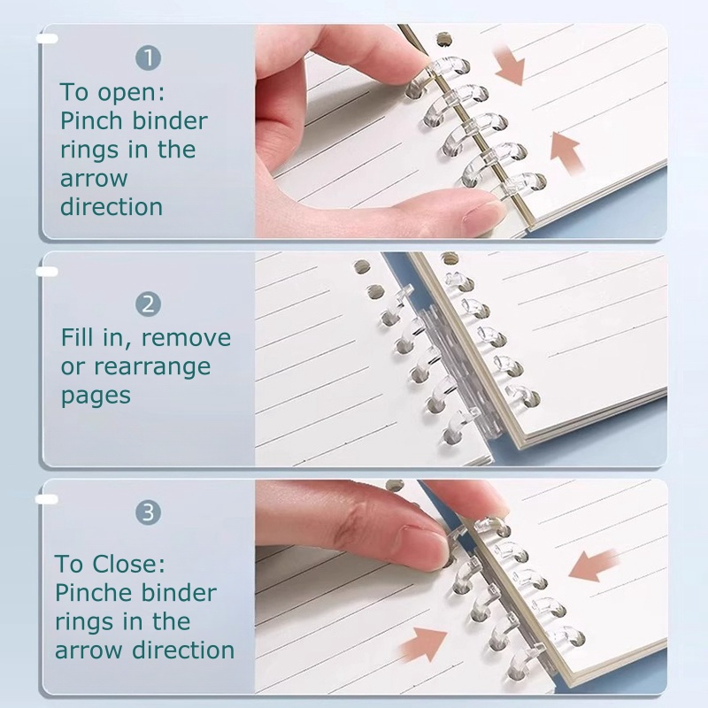 Loose-leaf notebooks allow users to add, remove, or reorganize their sheets, offering a more flexible way of note-taking. The binder rings are sturdy yet easy to open and fasten, which is actually effortless and soundless.